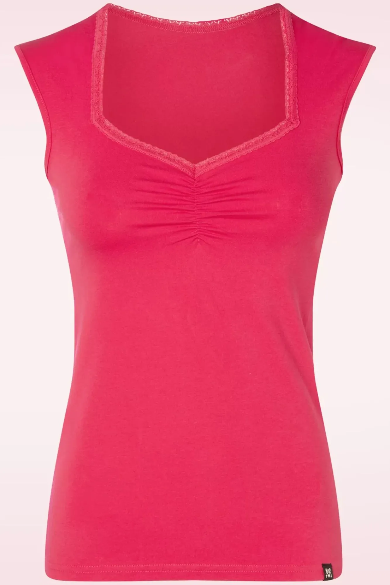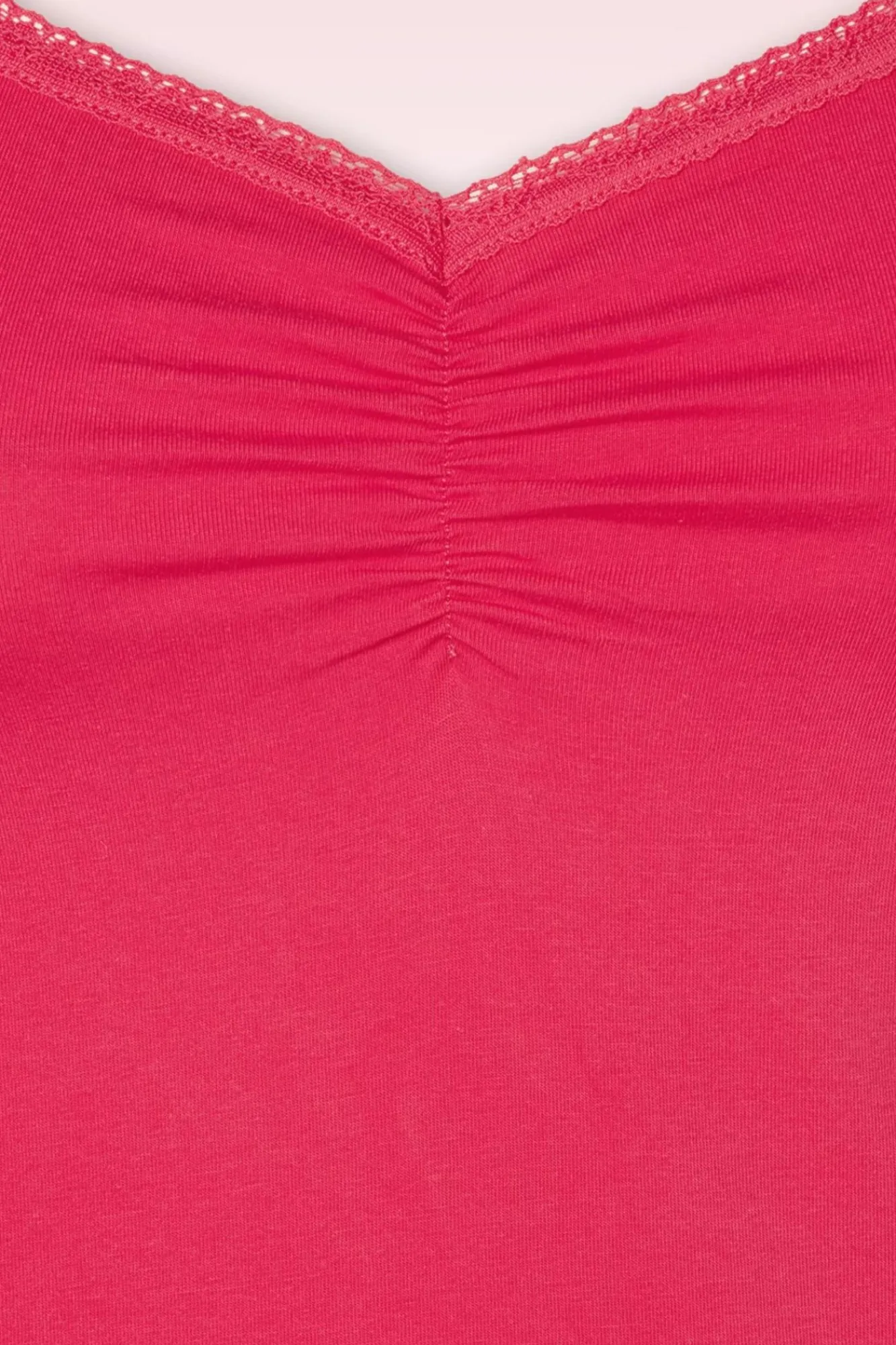 Hast Du All Die Phantastischen Kombination Schon Vor Augen?! Der Diamantförmige Ausschnitt Wurde Mit Einer Spitzenborte Vollendet Und Sorgt Dafür, Dass Sich Ein Wunderschönes Decolleté Zeigt. Gefertigt Aus Einem Dehnbaren, Himbeerrosa Bio Baumwollmix Für Eine Schöne Figurnahe Passform. Womit Du Es Auch Kombinierst, Es Sorgt Für Bildschöne Outfits.