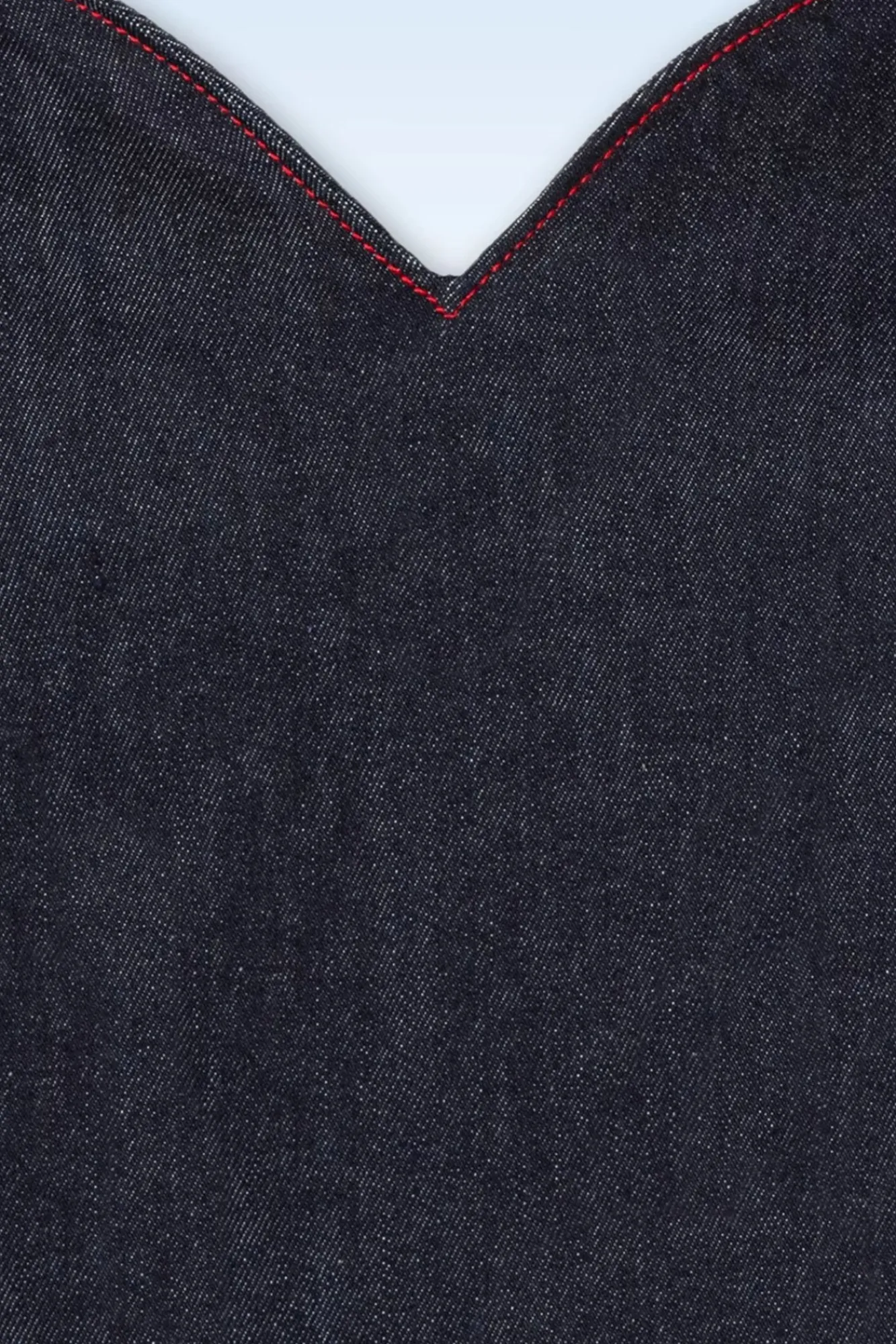 „In The Right Denim A Women Can Conquer The World!‘ Unsere Eigene Marke Rock-A-Booty Ist Bekannt Für Ihre ‚Denim Dreams’… Und Dieses 50Er Jenna Pencil Kleid In Dark Denim Ist Ein Traum Aus Jeans, Der Unser Herz Schneller Schlagen Lässt! Jenna Hat Einen Frechen V-Ausschnitt, Kurze Cap-Ärmel Und Einen Breiten Gürtel, Der Deine Taille Perfekt Betont. Der Wunderschöne Feste, Dunkele Denimblaue Baumwollmix Mit Leichtem Stretch Folgt Deinen Rundungen Perfekt Und Wurde Mit Roten Nähten Für Den Authentischen Touch Verziert. Rock Your Booty… Uhhh… Body In Diesem Atemberaubenden, Figurumspielenden Denim Kleid! 😉