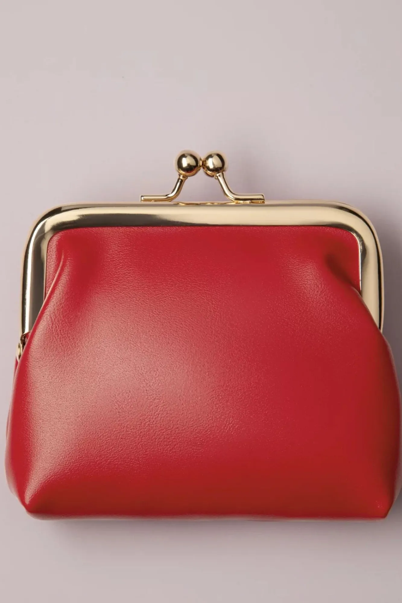 “Only Buy What You Neeeed!“ Dieses Traumhafte Portemonnaie Zum Beispiel 😉 Gefertigt Aus Lippenstiftrotem Kunstleder, Vollendet Mit Einer Schleife Und Einem Goldfarbenen Clipverschluss Für Den Wahren Vintage Look.