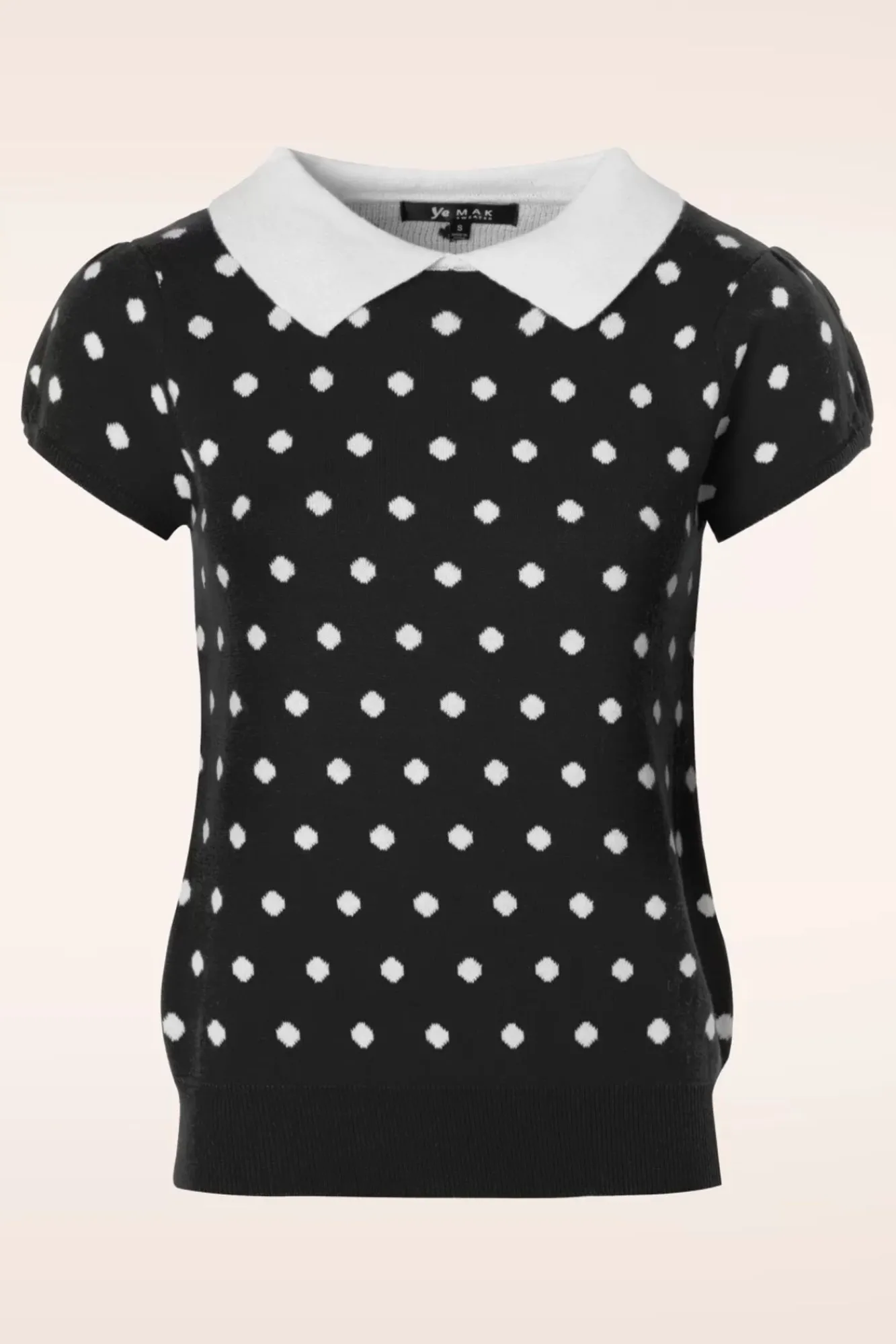 Goretro In Diesem 60Er Kristen Polkadot Pulli In Schwarz Und Weiß! Traumhaftschön Und Super Komfortabel… Da Bleibt Für Frau Keinen Wunsch Offen, Oder…?Hübscher Pulli In Einem Klassischen Schnitt Mit Einer Runden Halslinie Undeinem Kontrastierenden Kragen In Weiß, Kurzen Puffärmeln Und Einer Elastischenrippborte Für Eine Schöne Passform. Aus Einer Herrlich Weichen Und Dehnbarenbaumwollmischung In Feinstrick In Schwarz. Mit Polkadots An Der Spitze! 😉