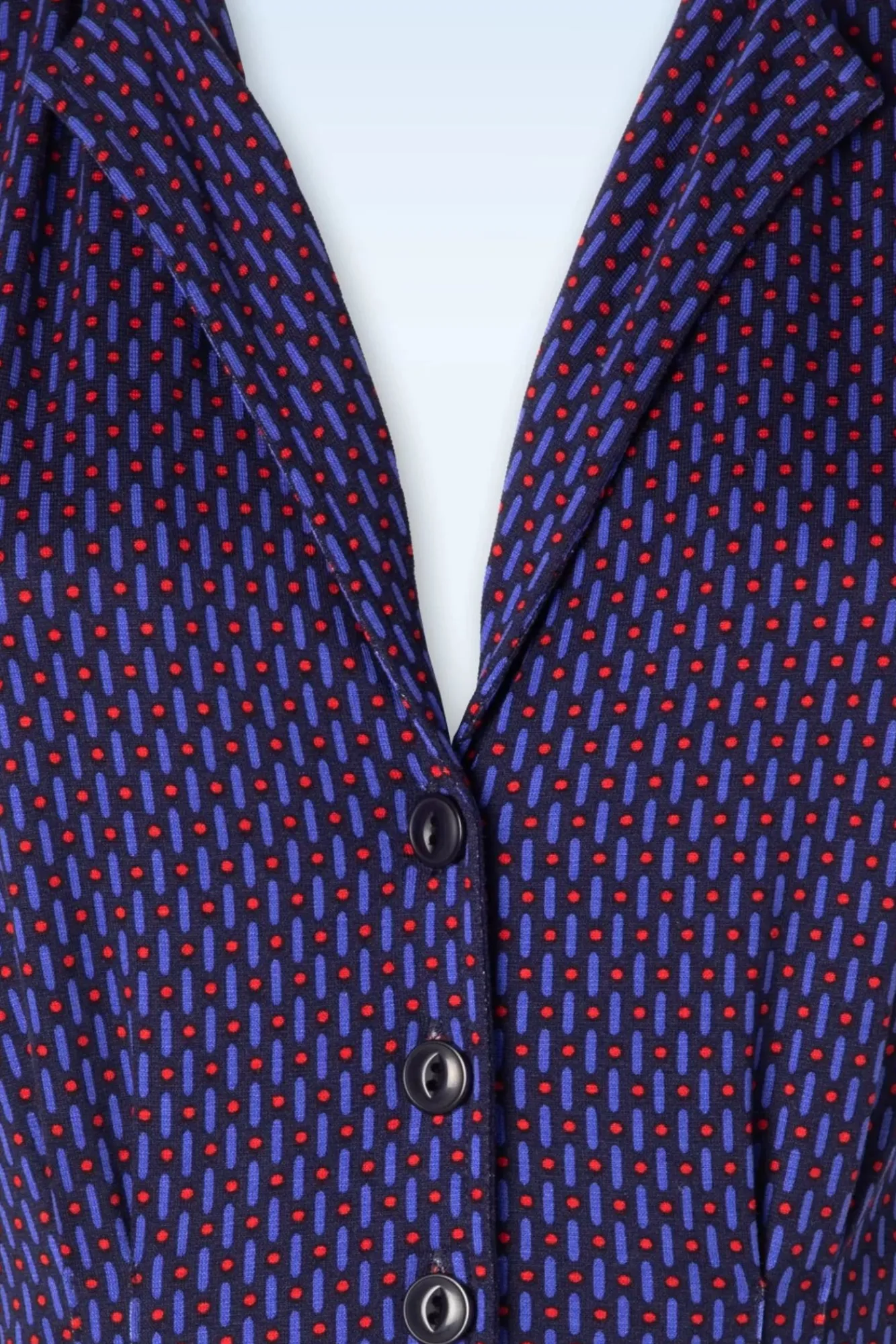 Springe Vor Freude In Diesem Phantastischen Darcy Jumpsuit! Gefertigt Aus Einem Angenehmen, Dehnbaren Ecovero Viskosemix, Der Sich Herrlich Trägt Und Mit Einem Retromuster In Blautönen Und Rot Versehen Wurde.