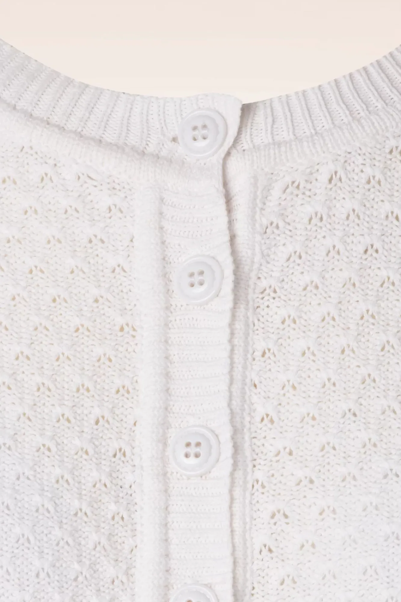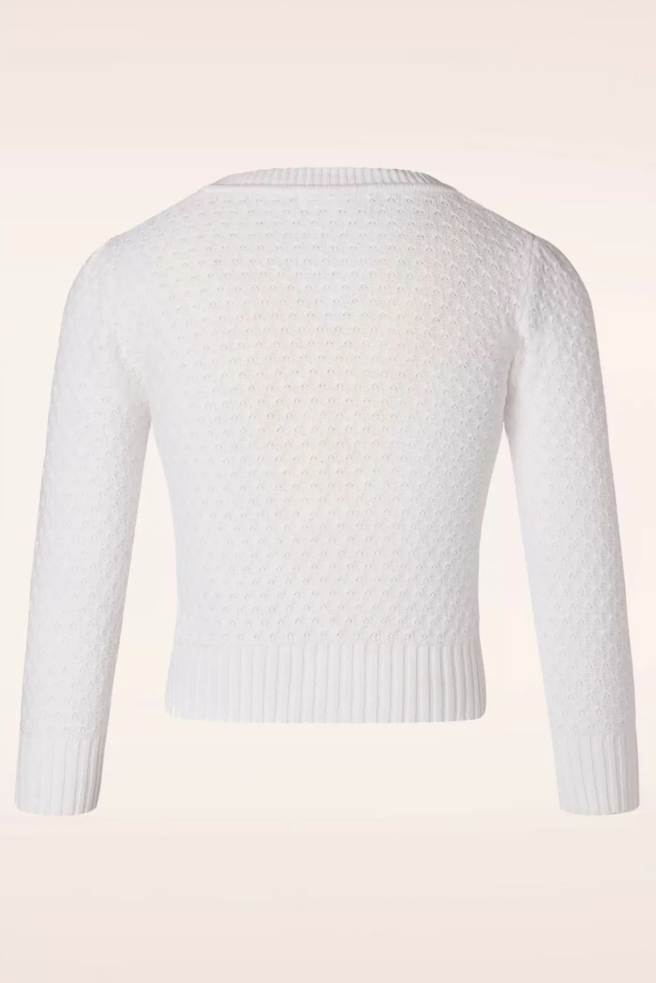 Dieser 50S Jennie Cardigan In White Ist Vielversprechend Und Passt Zu Jeder Hose Oder Jedem Rock… Und Er Ist Online In Deutschland, Frankreich Und Den Niederlanden Exklusiv Bei Topvintage Erhältlich! Eine (Strick) Jacke Ist Ein Kleidungsstück Das Oft Unterschätzt Wird, Aber Das Möchten Wir Ändern. Denn Einen Cardigan Sorgt Dafür Dass Du Auch An Einem Kalten Tag Dein Kleid Oder Deine Bluse Mit Kurzen Ärmeln Tragen Kannst, Deshalb Ist Ein Cardigan Ein Echter Gewinn Für Deinen Kleiderschrank. In Einem Klassischen Modell, Mit Einer Runden Halslinie, 3/4 Ärmeln Und Einer Elastischen Rippborte Für Eine Perfekte Passform. Aus Etwas Dickerer, Geschmeidiger Und Dehnbarer Baumwolle In Feinstrick In Weiß In Einem Dezenten Muster. Bestens Gerüstet Für Den Herbst!