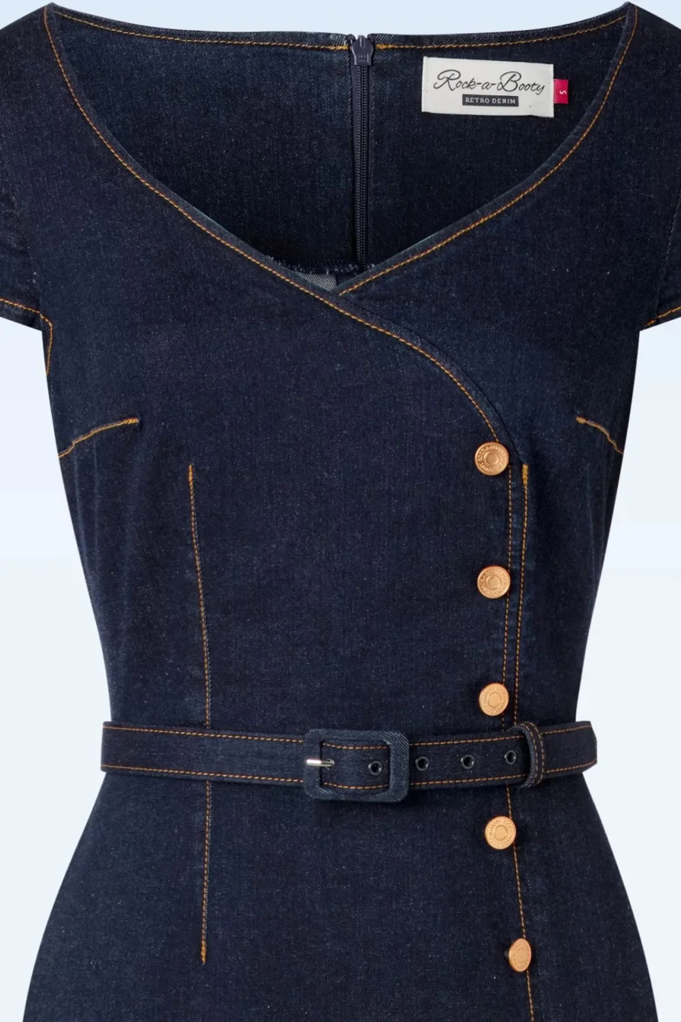 Unsere Eigene Marke Rock-A-Booty Ist Bekannt Für Ihre ‚Unique Blue Dreams’… Und Dieses Eliose Pencil Kleid In Blau Ist Ein Denim Traum, Der Herz Scheller Schlagen Lässt! ‚Rock Your Booty… Uhm… Body‘ In Diesem Denim Button Kurvenschmeichler ;-). Eliose Hat Einen Eleganten V- Ausschnitt. Kurze Cap-Ärmel, Eine Reihe Kupferfarbener Zierknöpfe, Einen Abnehmbaren Taillengürtel Und Einen Verführerischen Schlitz An Der Vorderseite. Dieser Tolle Feste, Aber Dehnbare, Indigoblaue Baumwollmix Folgt Deinen Rundungen Perfekt Und Wurde Mit Braunen Nähten Für Den Authentischen Touch Versehen. “Baby Booty, Juicy Fruity, Truck Stop Cutie, Eliose Beauty, I’M In Love With You!“