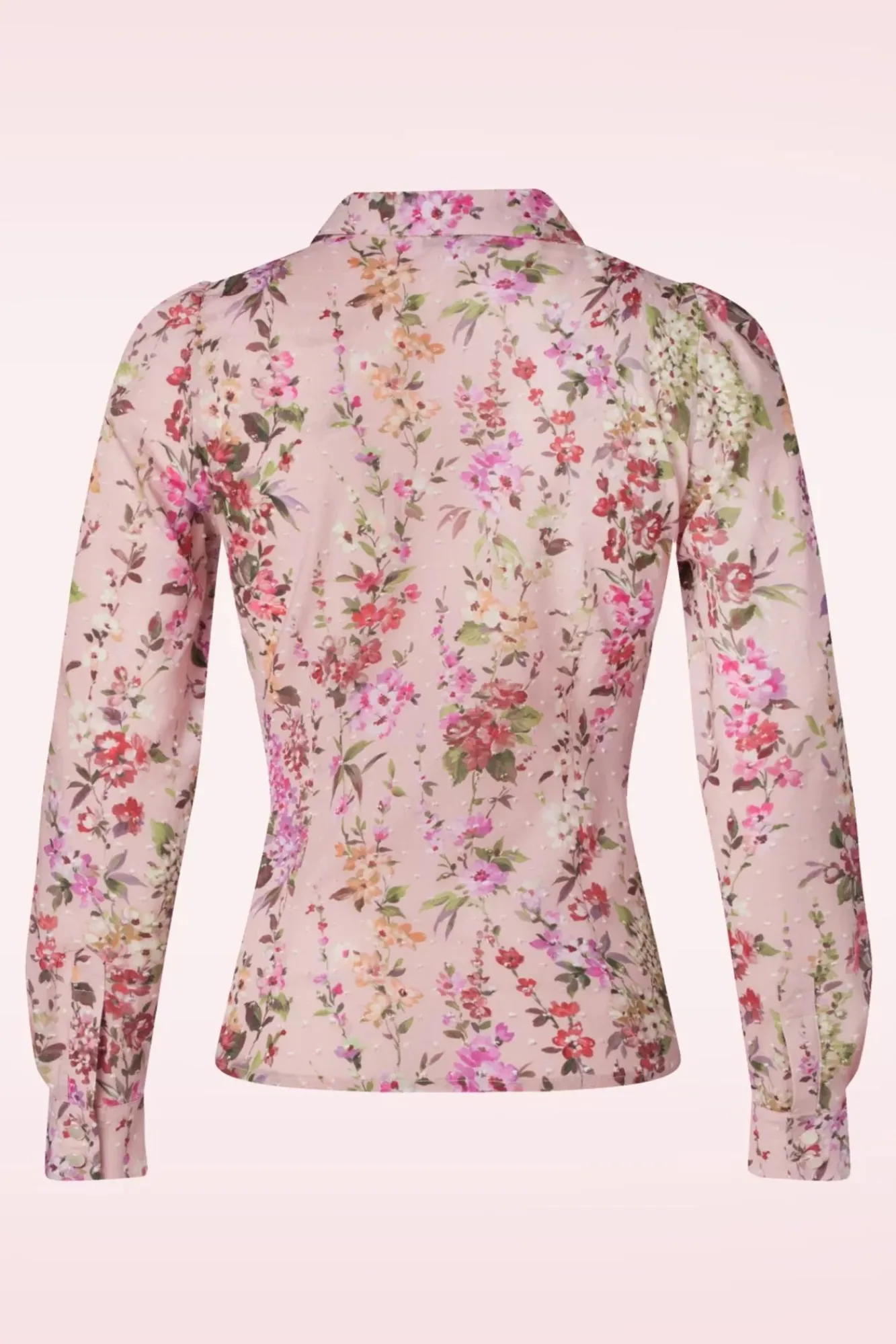 Erlebe Deine Eigene Sommerromanze Mit Dieser Beauty! Diese Bluse Hat Einen Spitzen Kragen, Lange Puffärmel Und Wurde Aus Einer Luftigen, Hellrosa Baumwolle (Stretcht Nicht!) Mit Einem Romantischen Blumenmuster Und Einer Kügelchen-Struktur Gefertigt. L-I-E-B-E!