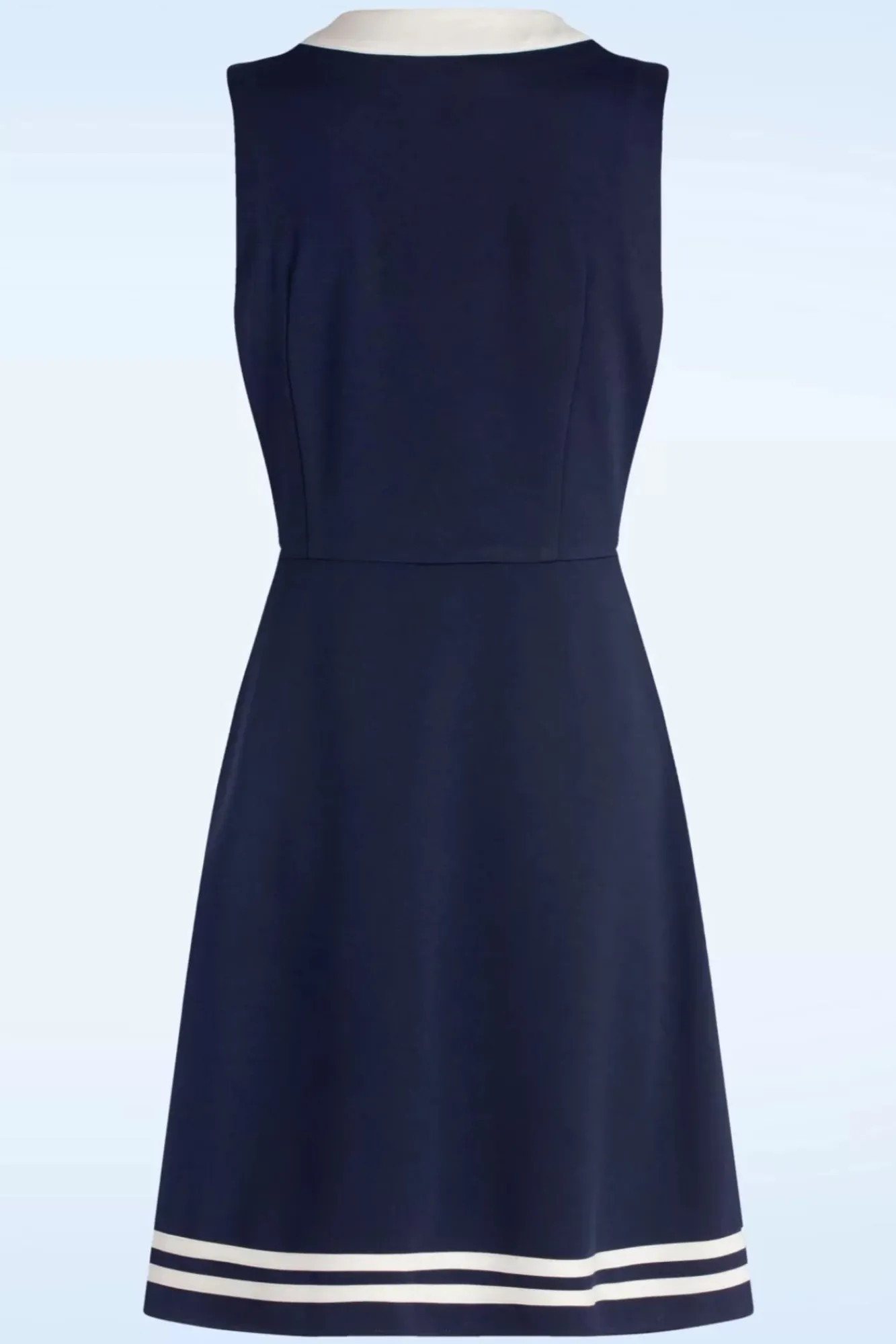 “Lets Sail Away!“ Dieses Kleid Wurde Aus Einem Etwas Dickeren, Aber Doch Angenehmen Und Dehnbaren, Marineblauen Stoff Gefertigt Und Mit Einer Festen Weißen Schleife Und Weißen Details Versehen.